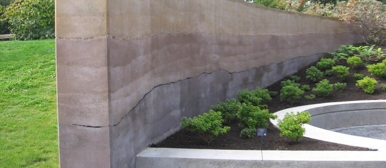 • Rammed Earth Material – Rammed earth construction, which is an ancient building technique, is often used in current times to create aesthetically pleasing designs. Rammed earth material forms are constructed using a mixture of clay, earth, rock, sand, silt and sometimes cement. A mixture of these ingredients is placed between framed forms and then rammed using a mechanical rammer. After compaction, the framework is removed leaving a uniquely beautiful rammed earthen wall. One of the benefits of this type of construction is the excellent thermal mass that is created leading to stabilized heating and cooling. These uniquely designed structures can be used to craft beautiful homes, decorative walls, architectural designs, and hardscape landscaping.